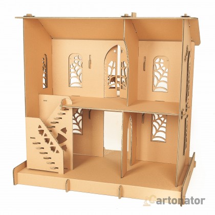 Двоповерховий будиночок для ляльок з картону – чудовий подарунок творчій дівчинці. Адже його можна розмалювати та «облаштувати» на свій смак. Легкість матеріалу дозволяє його переміщати без зусиль. Підійде для ляльок заввишки до 30 см.